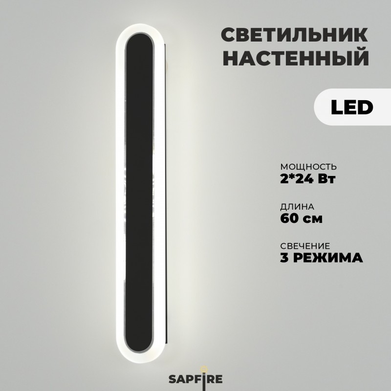 Светильник настенный САПФИР SPF-4787 Черный + ром ` 600мм 1/LED/2*24W BARR 22-07 (1 из 10шт в короб