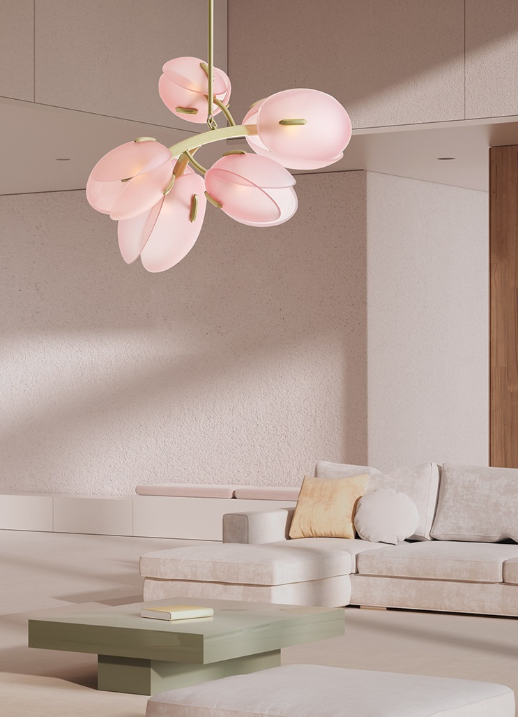 Светильник подвесной ElegantLight DZN-11308 РОЗОВЫЙ ` D700/H420+600/5/G9/25W
