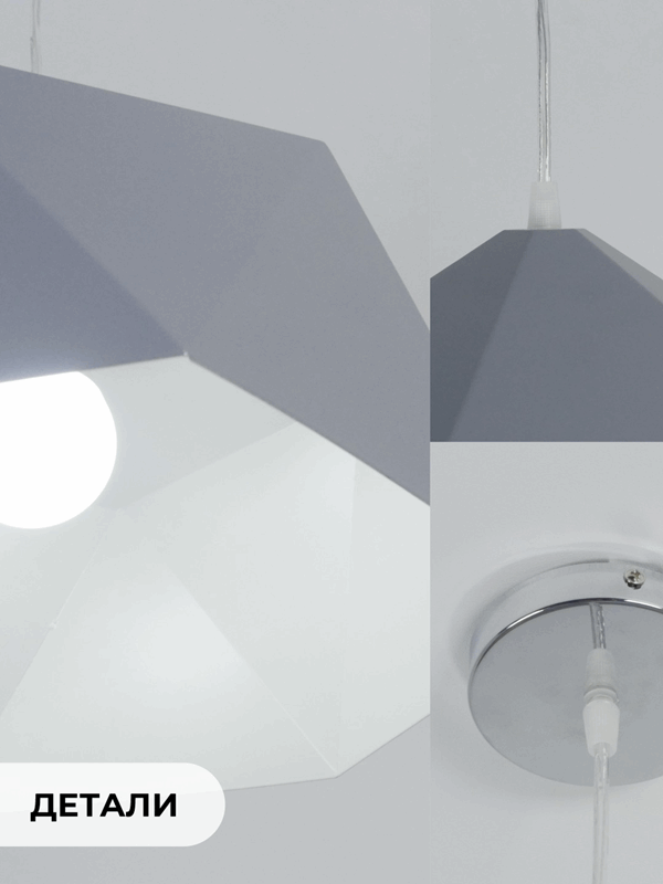 Светильник подвесной SPF-6130 СЕРЫЙ+БЕЛЫЙ ` D380/H1190/1/E27/40W без ламп, прозрачный провод SPFD PA