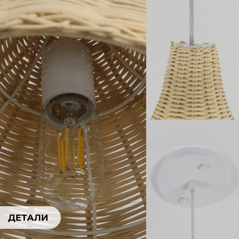 Купить Светильник подвесной SPFD-47324 БЕЛЫЙ РОТАНГ ` D350*350/H1000/1/E27/30W прозрачный провод, без ламп в Санкт-Петербурге
